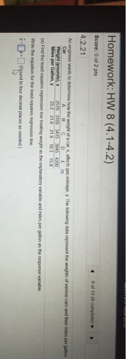 Solved An Engineer Wants To Determine How The Weight Of A | Chegg.com